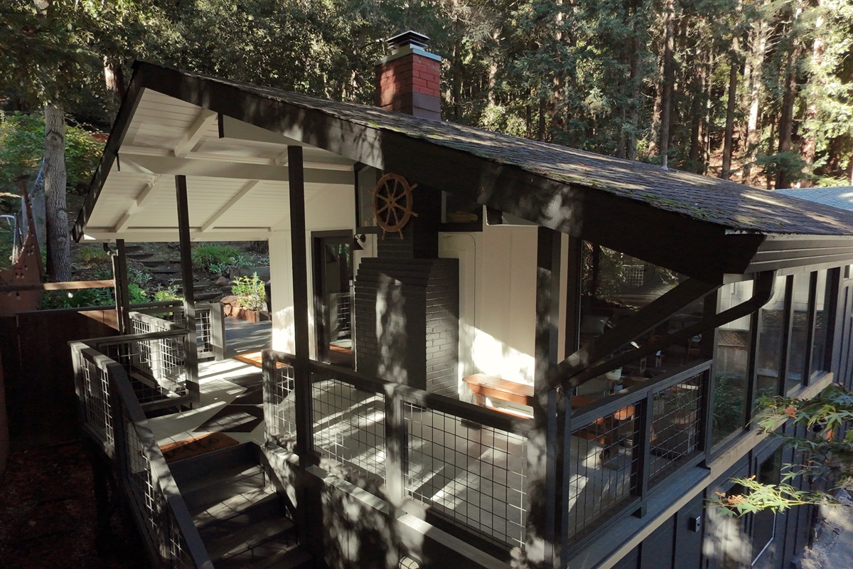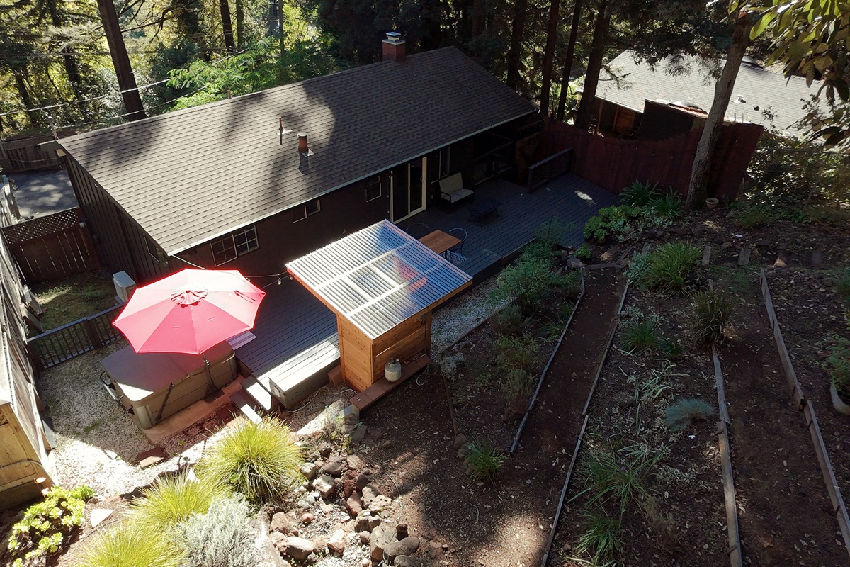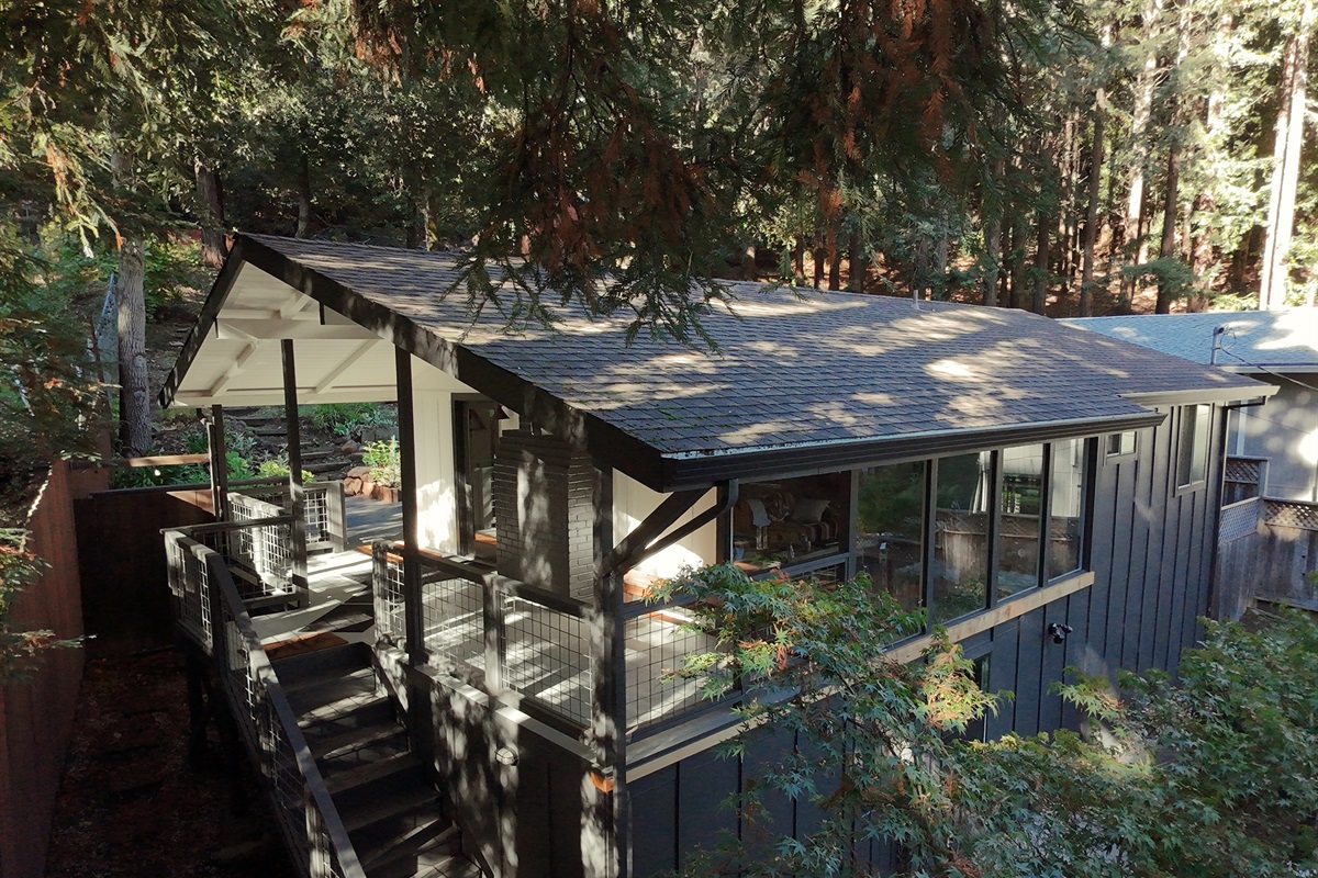 Surrounded by towering trees and a private fenced backyard oasis, Riverhaus features an outdoor shower, serene lounge areas, and a relaxing hot tub—ideal after a day of hiking, wine tasting, or exploring Sonoma County.