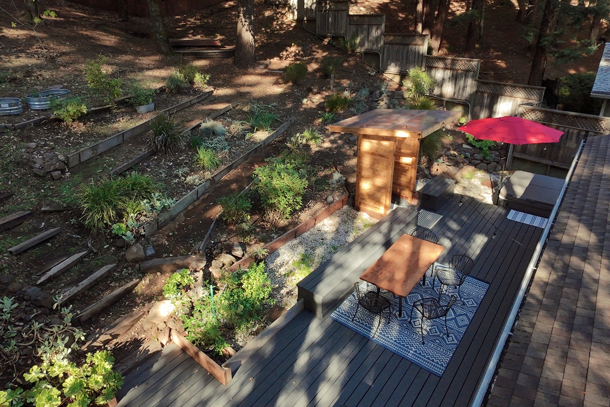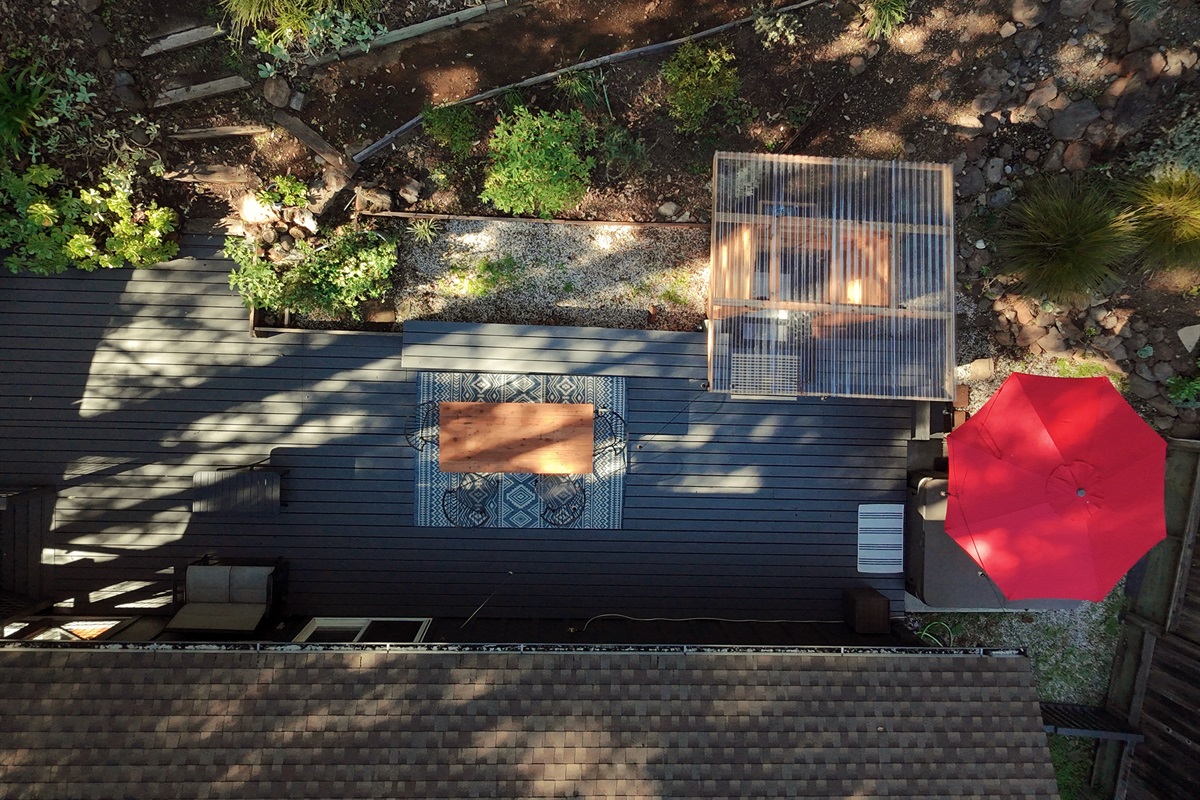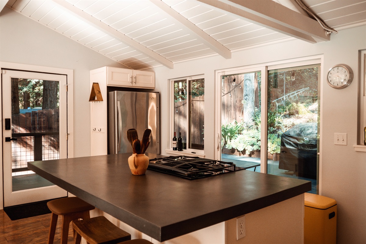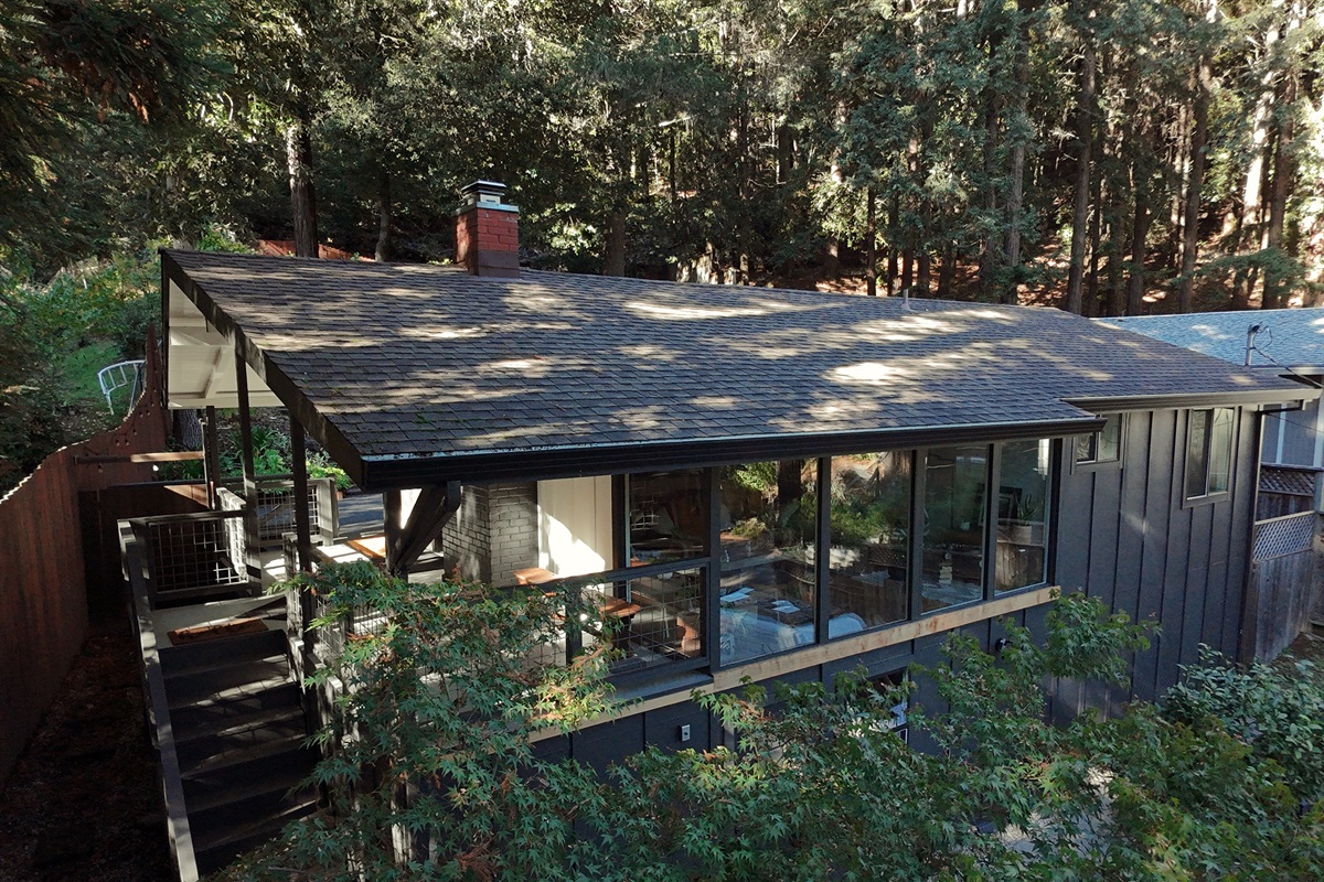 Surrounded by towering trees and a private fenced backyard oasis, Riverhaus features an outdoor shower, serene lounge areas, and a relaxing hot tub—ideal after a day of hiking, wine tasting, or exploring Sonoma County.